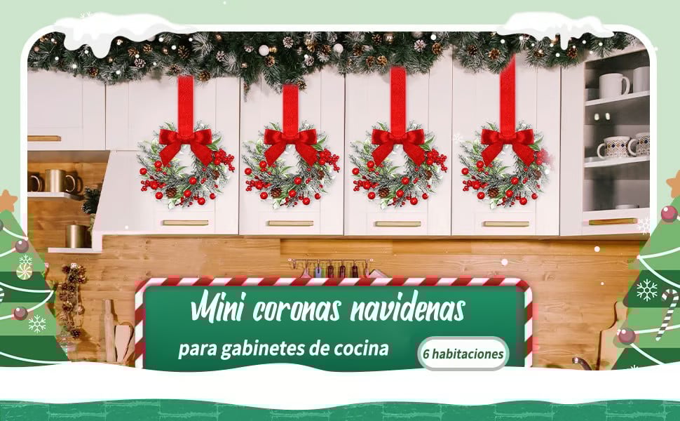 Mini Guirnaldas Navideñas para Alacenas y Muebles – Set de 6 Decoraciones Navideñas